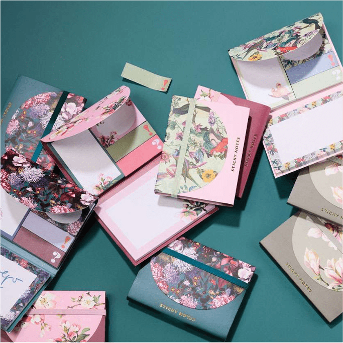 Klebe-Notiz-Zettel in beliebten Mustern hilft beim markieren, notieren und generell den Überlick zu behalten. Das Set enthält zusätzlich noch einen Notizblock zum abreißen.