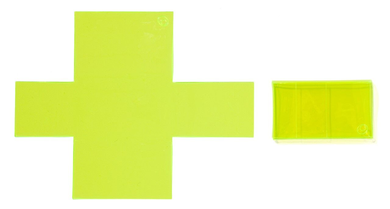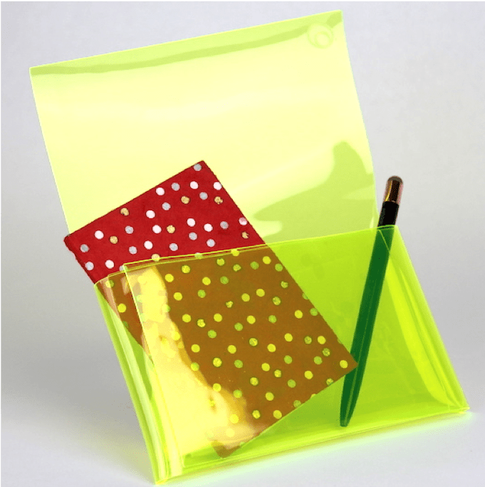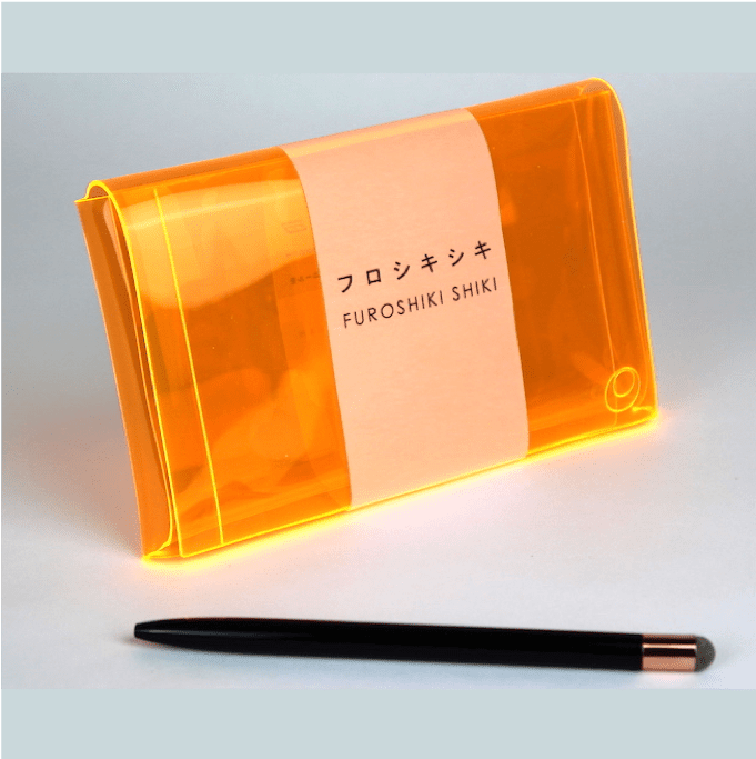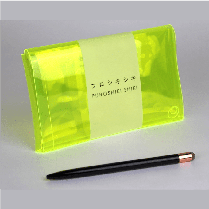 Diese Aufbewahrung aus der Furoshiki-Shiki-Serie (inspiriert von der japanischen Verpackungskunst) eignet sich sehr gut für kleine Artikel wie Sonnenbrillen, Schlüssel, Reisepass oder Tagebuch. Es besteht aus einer Platte aus halbtransparentem Vinyl und ist in mehreren fluoreszierenden Farben erhältlich.