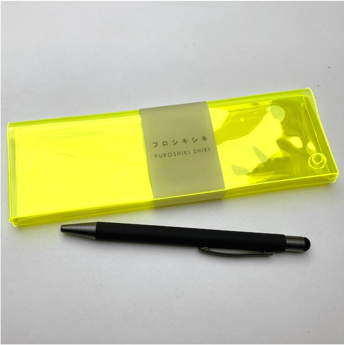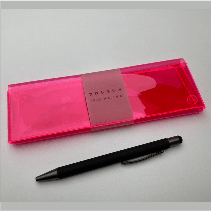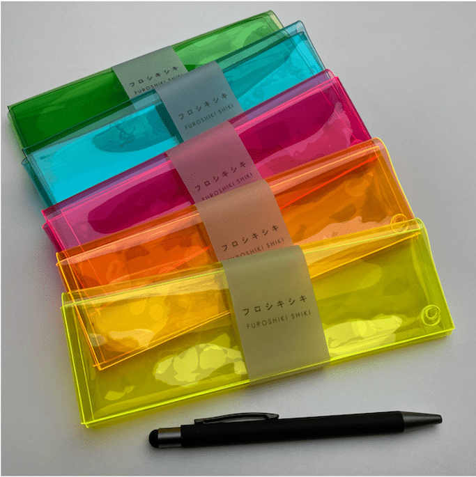 Dieses Mäppchen aus der Furoshiki-Shiki-Serie (inspiriert von der japanischen Verpackungskunst) eignet sich sehr gut für Stifte aller Art. Es besteht aus einer Platte aus halbtransparentem Vinyl und ist in mehreren fluoreszierenden Farben erhältlich.