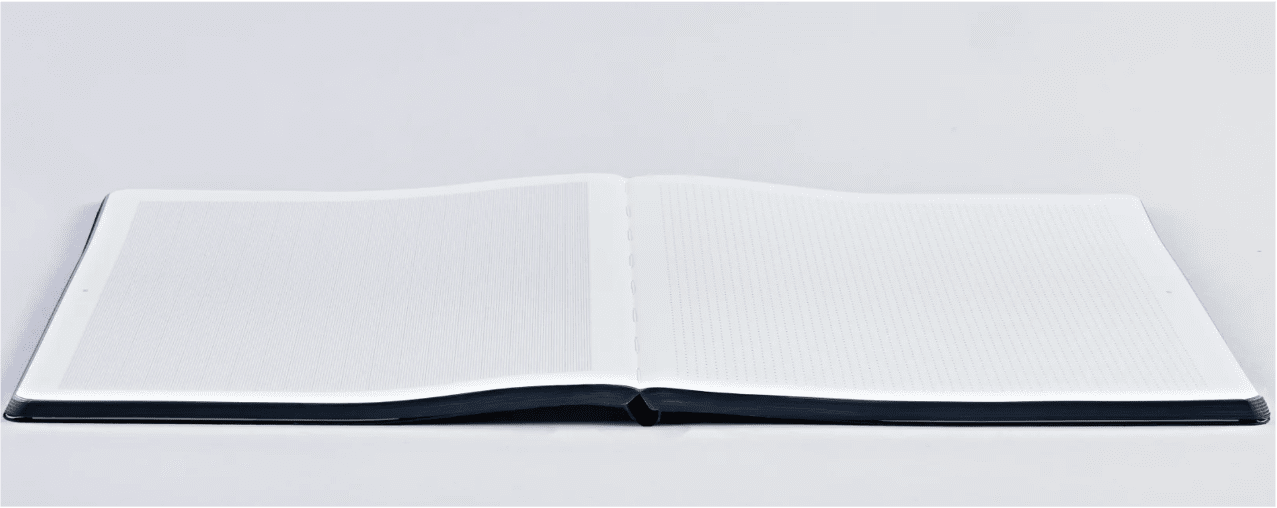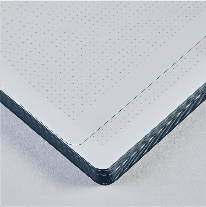 Die Schönheit im Alltäglichen finden und dabei Funktionalität und Ästhetik verbinden – das ist die Vision von MUT, die sich auch in dem Workbook L der nuuna x MUT Kollaboration wiederfindet: Das am Buchrücken eingearbeitete Gummiband ist dazu gedacht, sicher einen Stift zu halten. Im Inneren ist vorne und hinten jeweils eine Einstecktasche integriert, in denen Zettel und Belege aufbewahrt werden können. Der Clou: Die linken Seiten des Buches sind mit Millimeter-Raster für präzise technische Zeichnungen bedruckt. Die rechten Seiten mit einem Raster, das, inspiriert von unserem Punktraster, nicht aus Punkten, sondern einem Element aus dem MUT-Logo besteht – perfekt zum Schreiben und Skizzieren. Seitenzahlen bieten zusätzlich Orientierung auf dem 120 g Premium-Papier. Die perfekte Arbeitsfläche für grenzenlose Kreativität! Für das Cover hat das Duo einen nachhaltigen Naturkarton von Gmund gewählt, der den Workbook-Charakter durch seine raue Haptik unterstreicht. Er besteht aus 100 % recyceltem Altpapier und ist mit dem Blauen Engel zertifiziert. Eine grafische Folienprägung verleiht dem Workbook ihre typische MUT-Ästhetik.